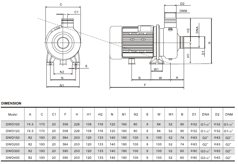 Fundición, contraportada, impulsor y eje de la bomba: SUS304 material