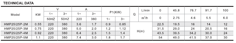 HMP-P autocebante hasta 2 m. Para uso domestico o industrial, sistemas de riego y sistemas de presión.
